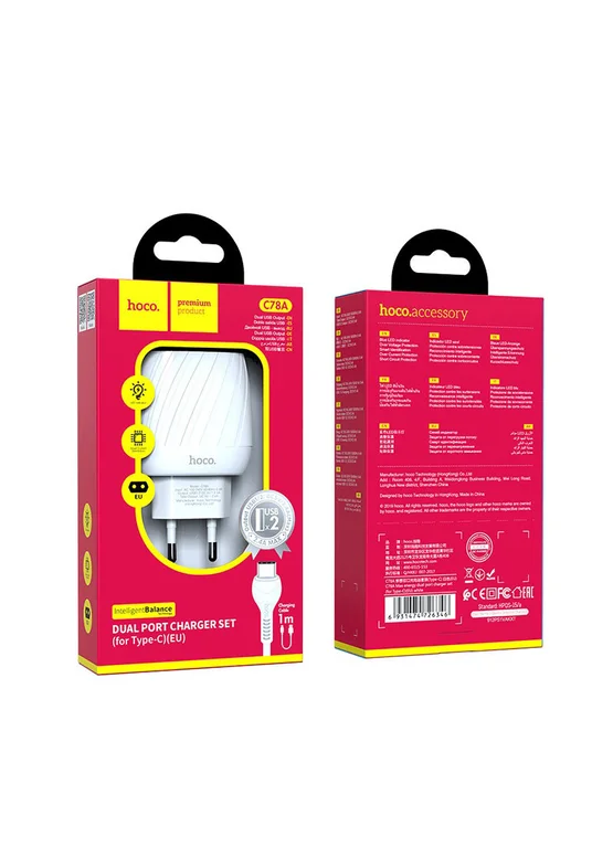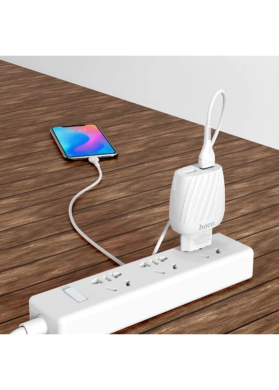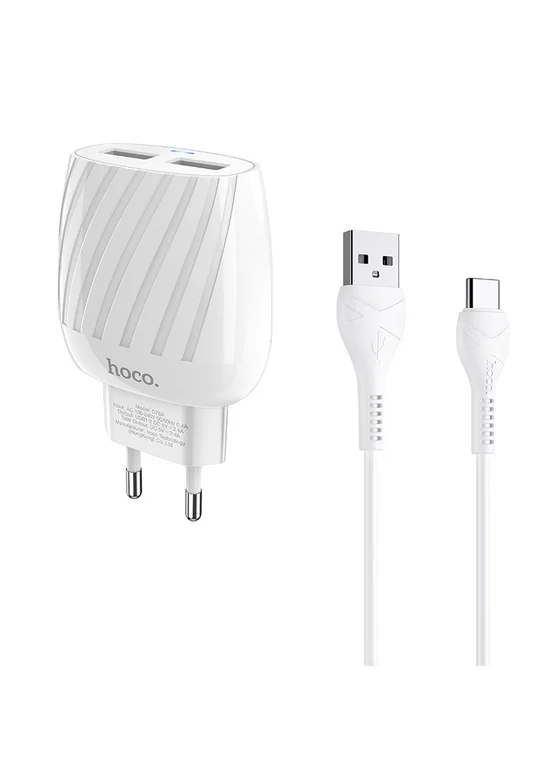 СЗУ Hoco C78A (2USB/2.4A) + Type-C (Белый)