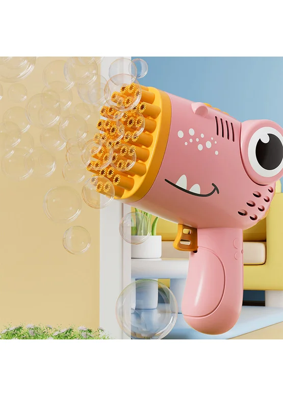 Пистолет для мыльных пузырей Dinosaur Bubble Gun с насадкой на 40 отверстий 50ml Pink