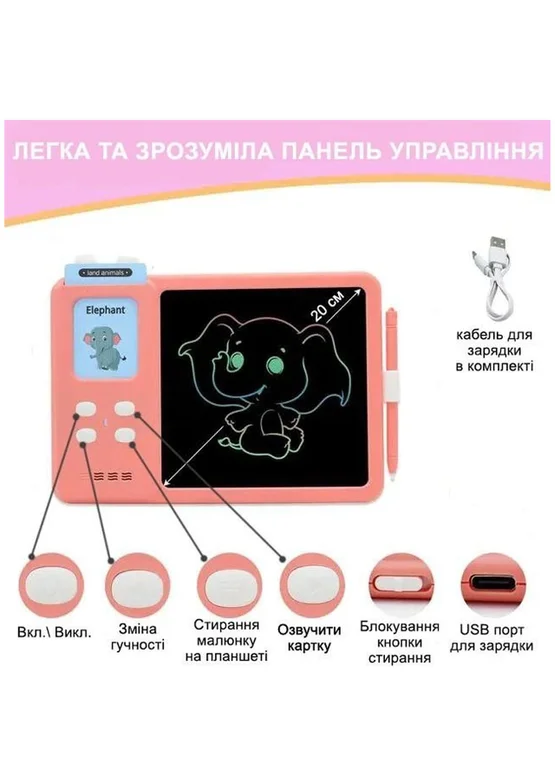 Работает от встроенного емкого аккумулятора, что обеспечивает до 3-4 часов занятий, а использование электронного устройства позволяет экономить бумагу и беречь окружающую среду