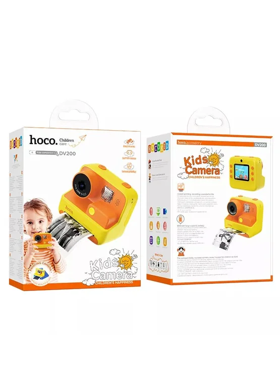 Детская фотокамера с моментальной печатью Hoco DV200 Dual lens Yellow