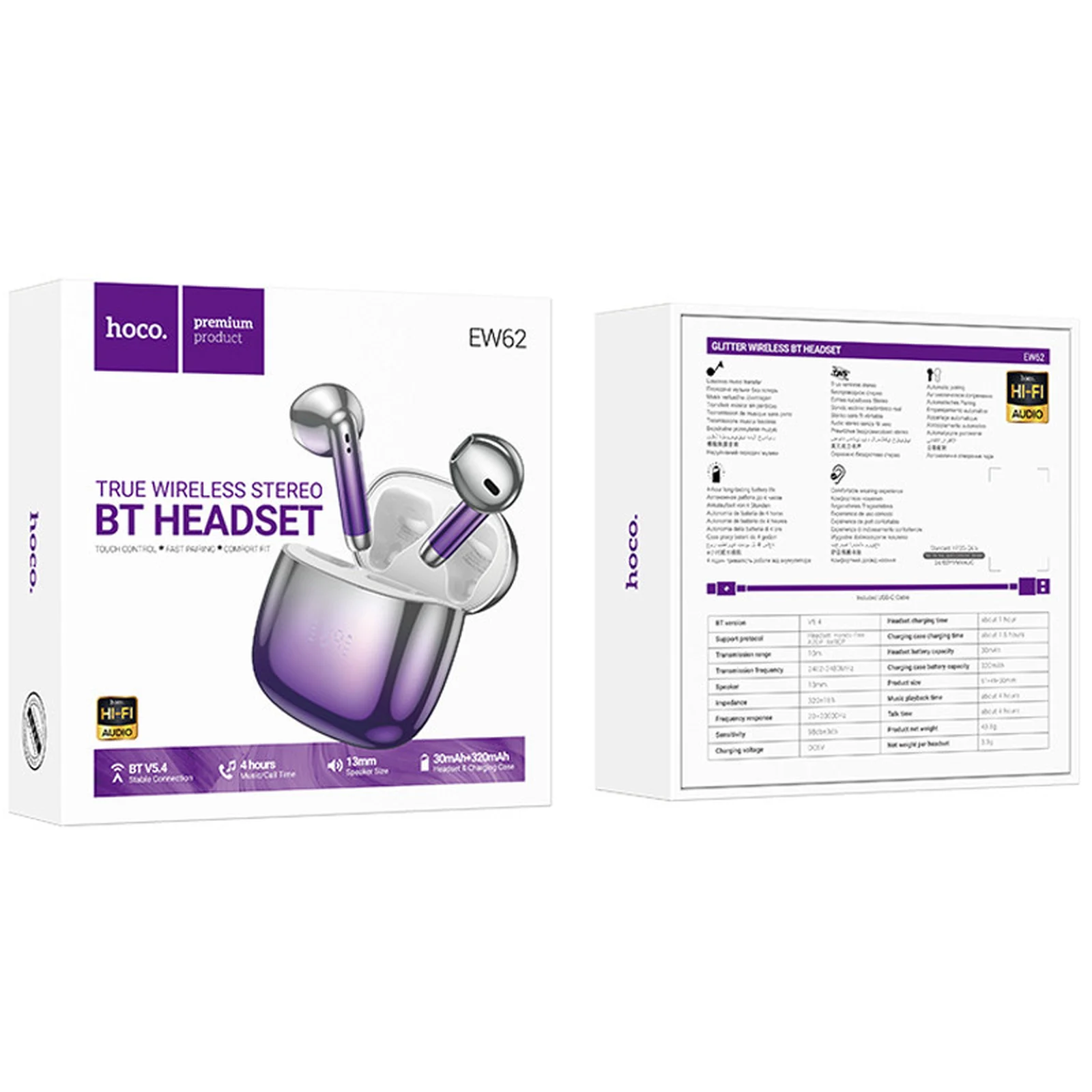 Беспроводные TWS наушники Hoco EW62 Glitter Purple glaze