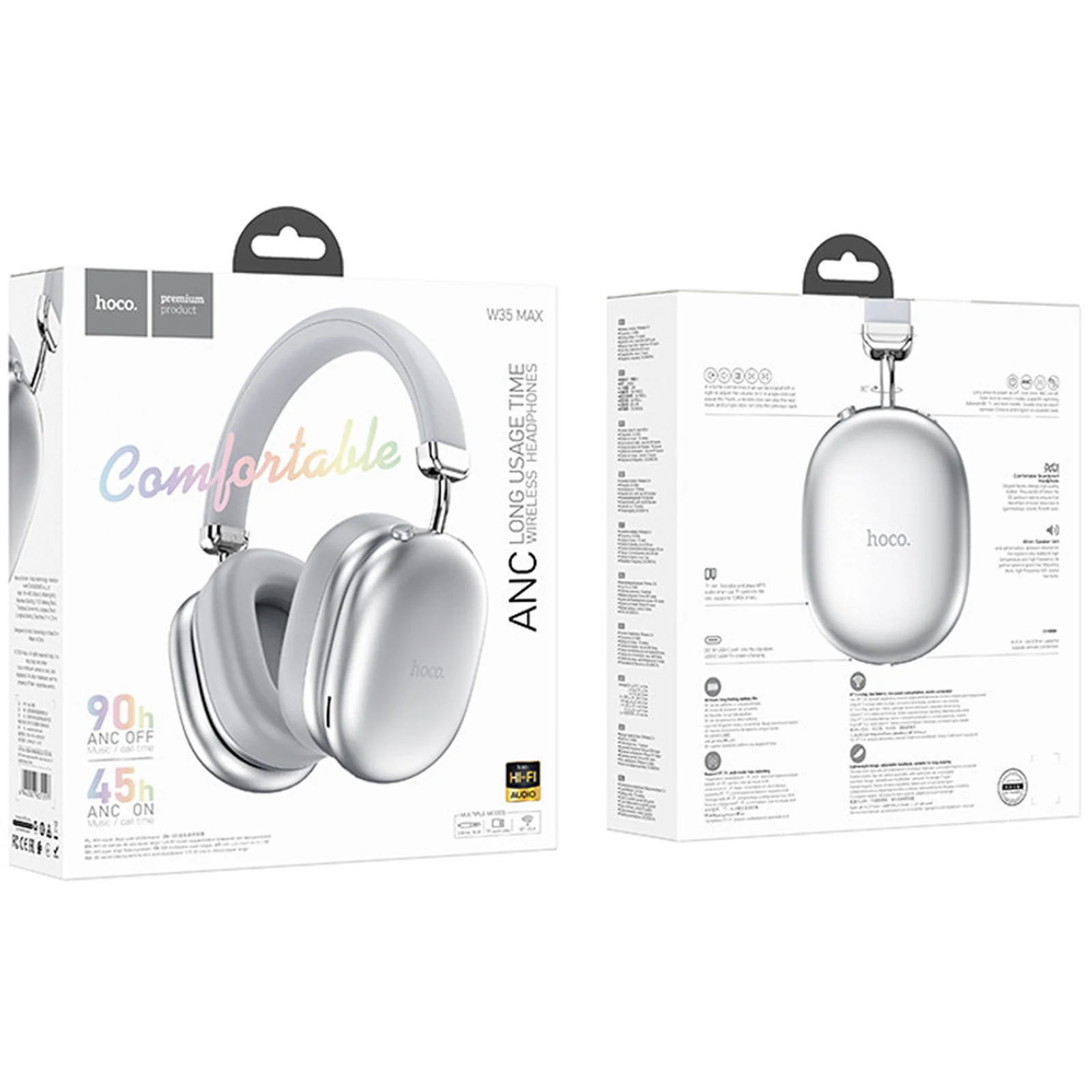Накладные беспроводные наушники Hoco W35 Max Auspicious ANC Silver