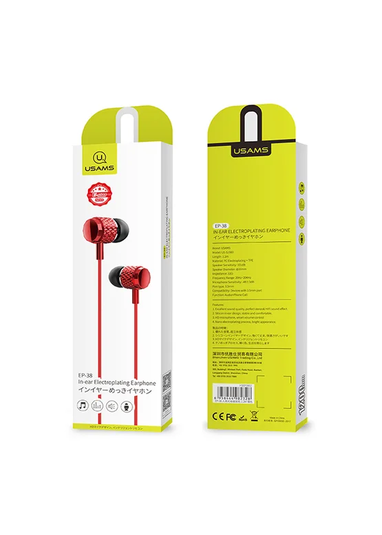 Наушники Usams EP-38 с микрофоном (Красный)