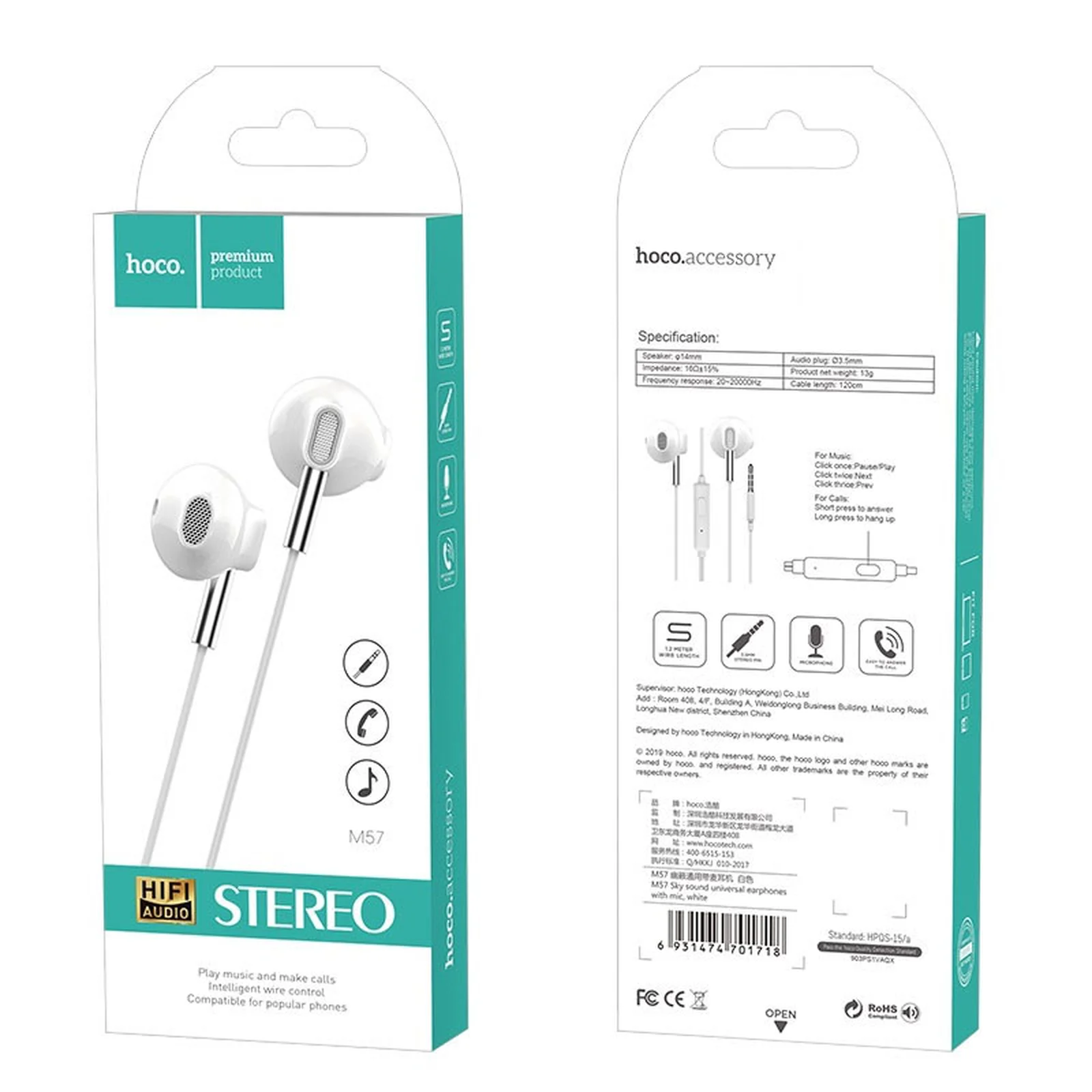 Стерео Наушники Hoco M57 Белый