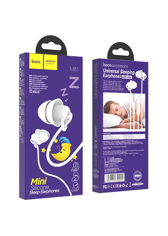 Стерео Наушники Hoco M81 Imperceptible universal sleeping earphone White