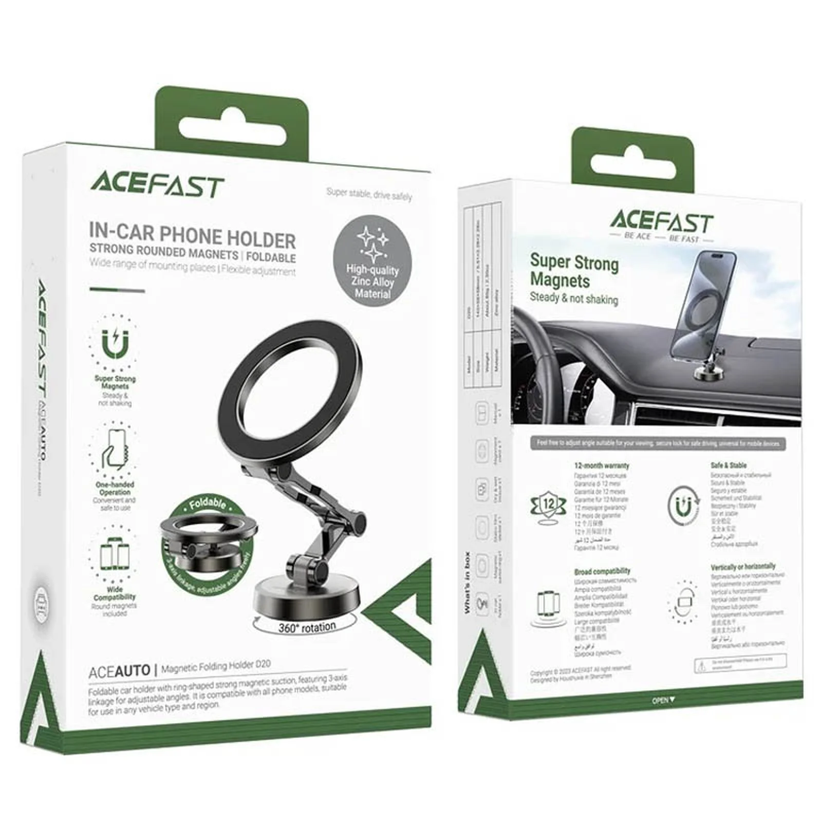 Автодержатель Acefast D20 magnetic car holder Metal gray