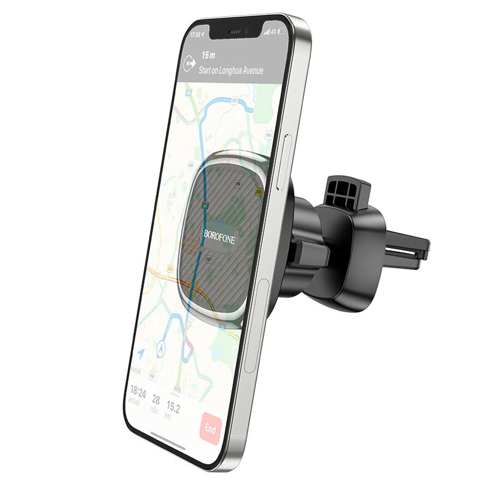 Держатель может быть установлен как вертикально, так и горизонтально, в зависимости от предпочтений водителя или наличия приложений на смартфоне.