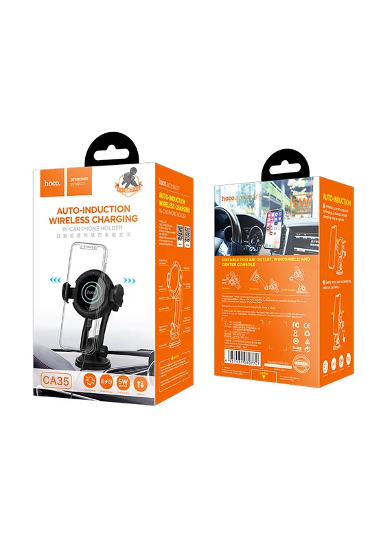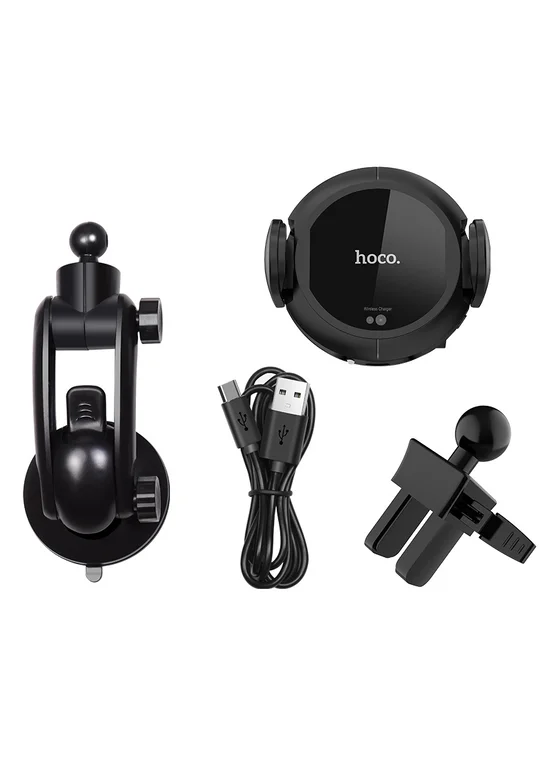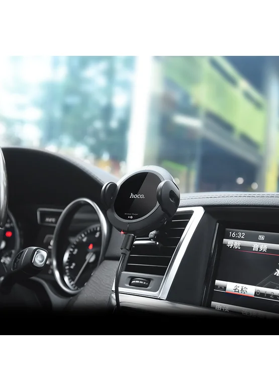 Автодержатель Hoco CA35 Plus с автозахватом и беспроводной зарядкой (Черный)