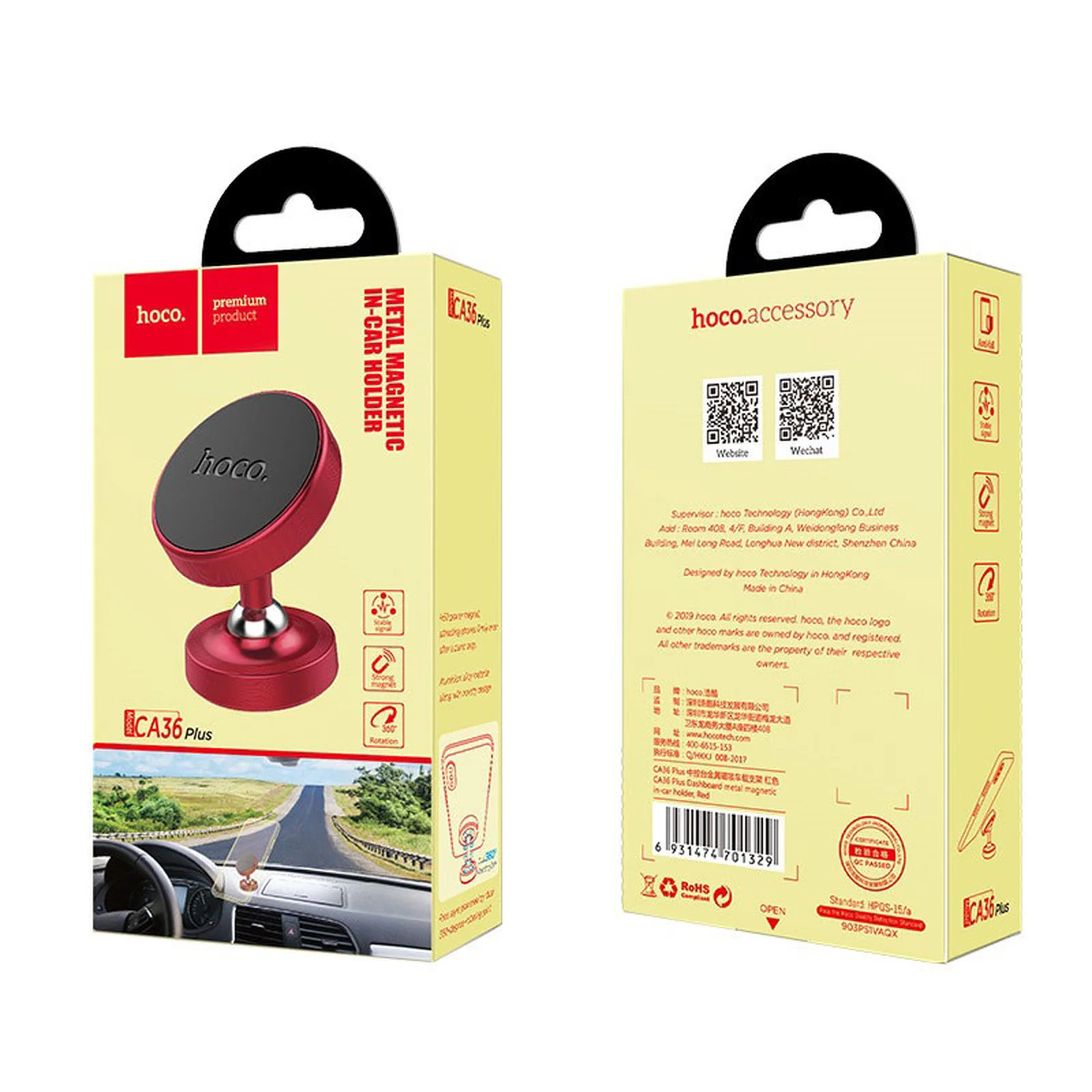 Автодержатель Hoco CA36 plus магнитный (Красный)