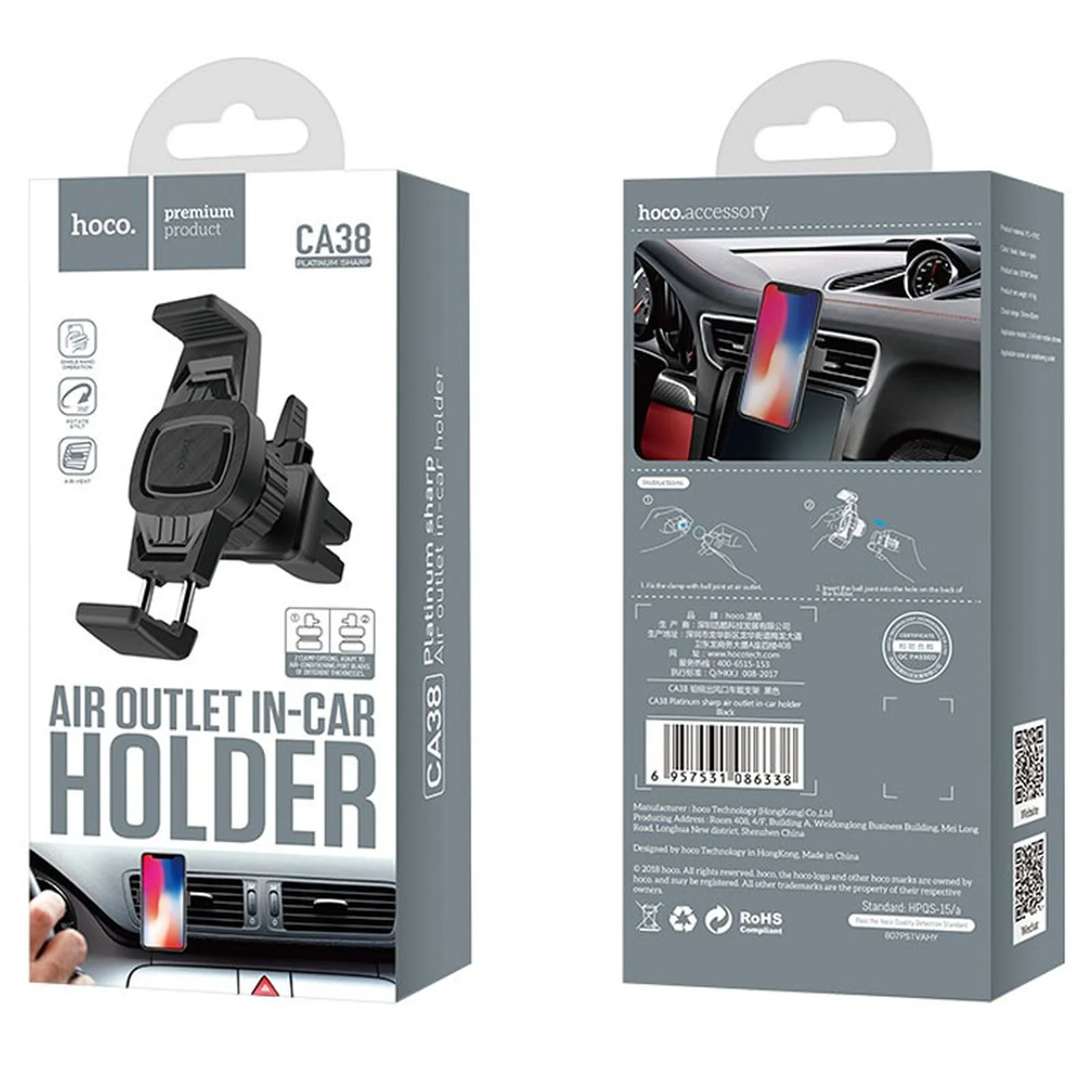 Автодержатель Hoco CA38 (Черный)