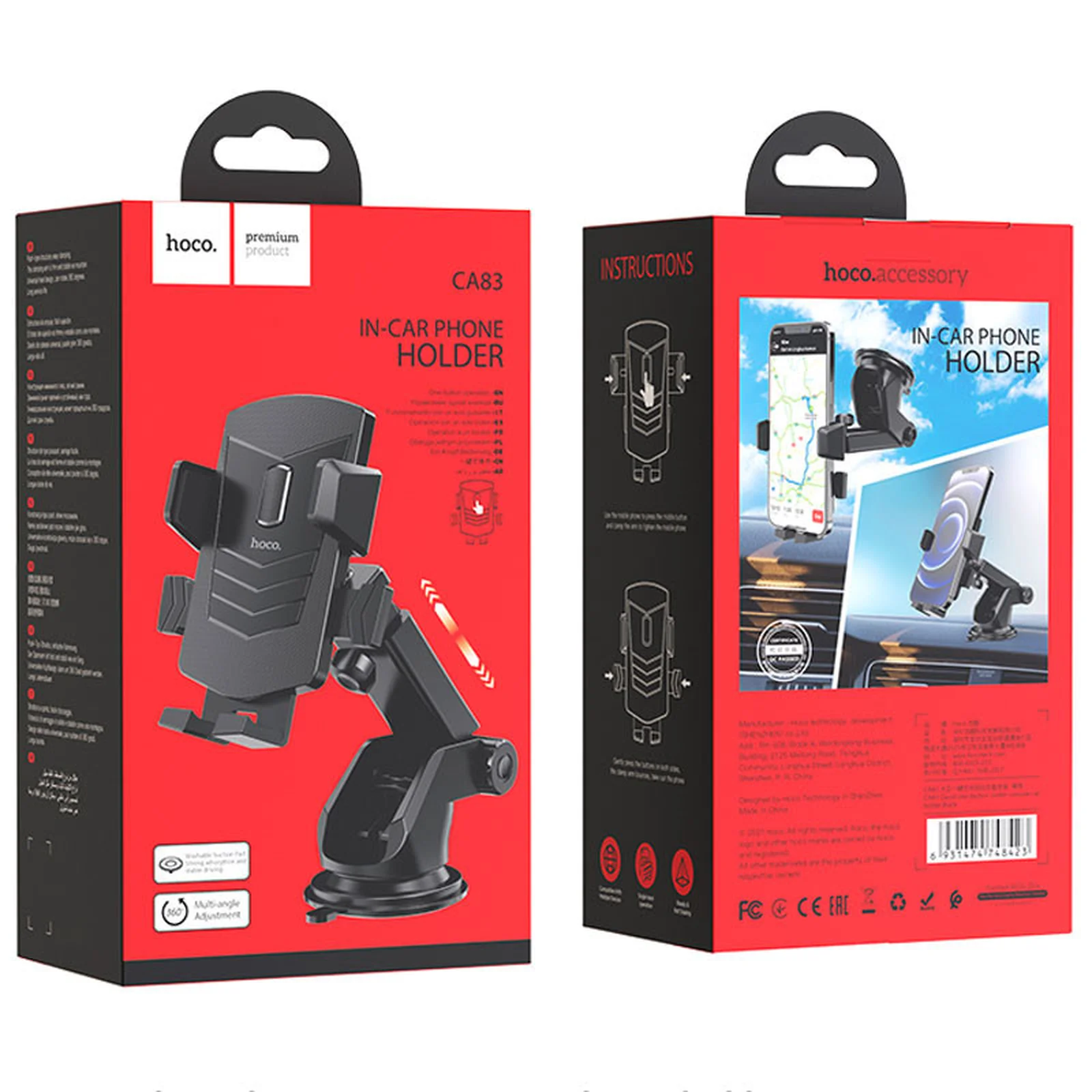 Автодержатель Hoco CA83 David one-button (center console) Black
