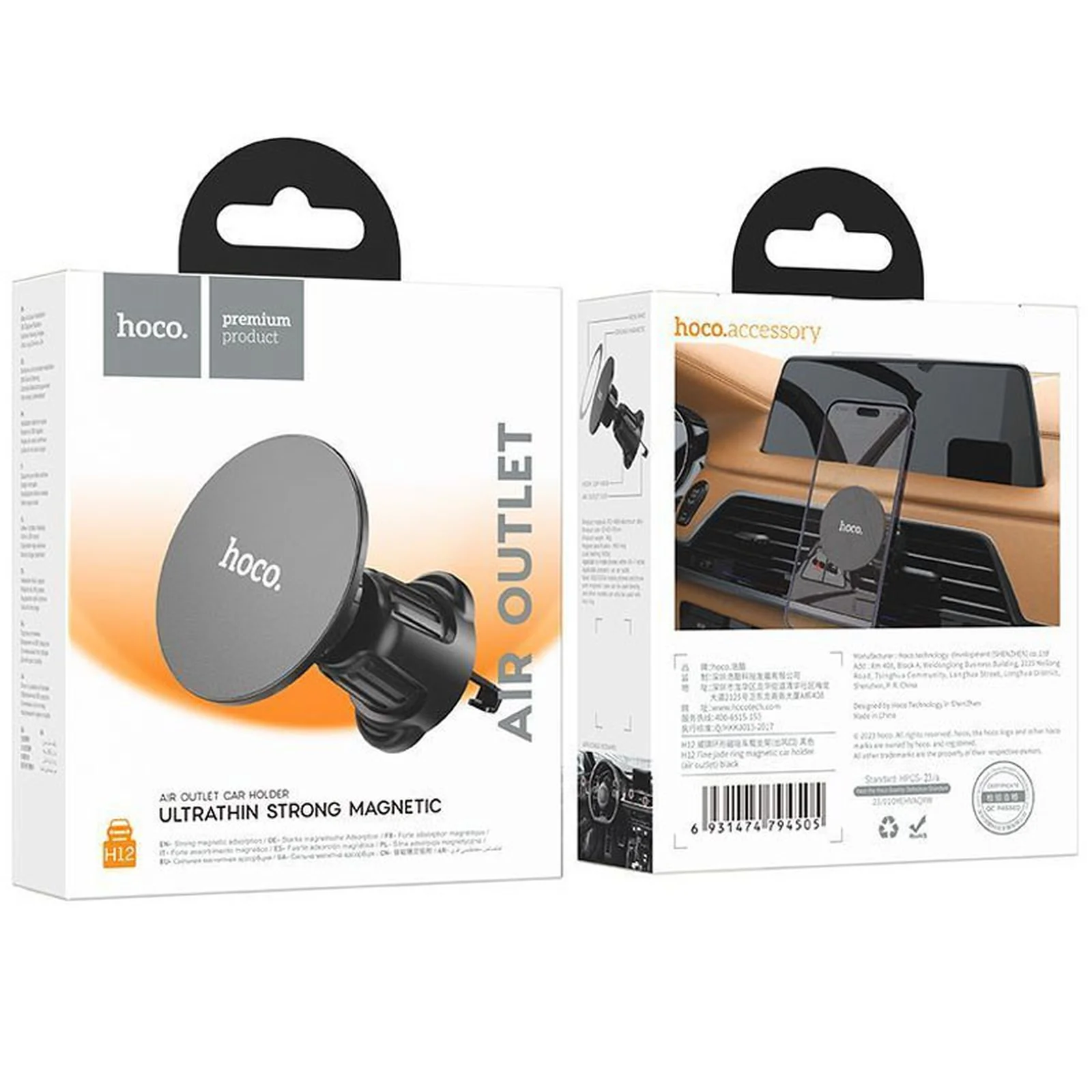 Автодержатель Hoco H12 Fine jade ring (air outlet) Black