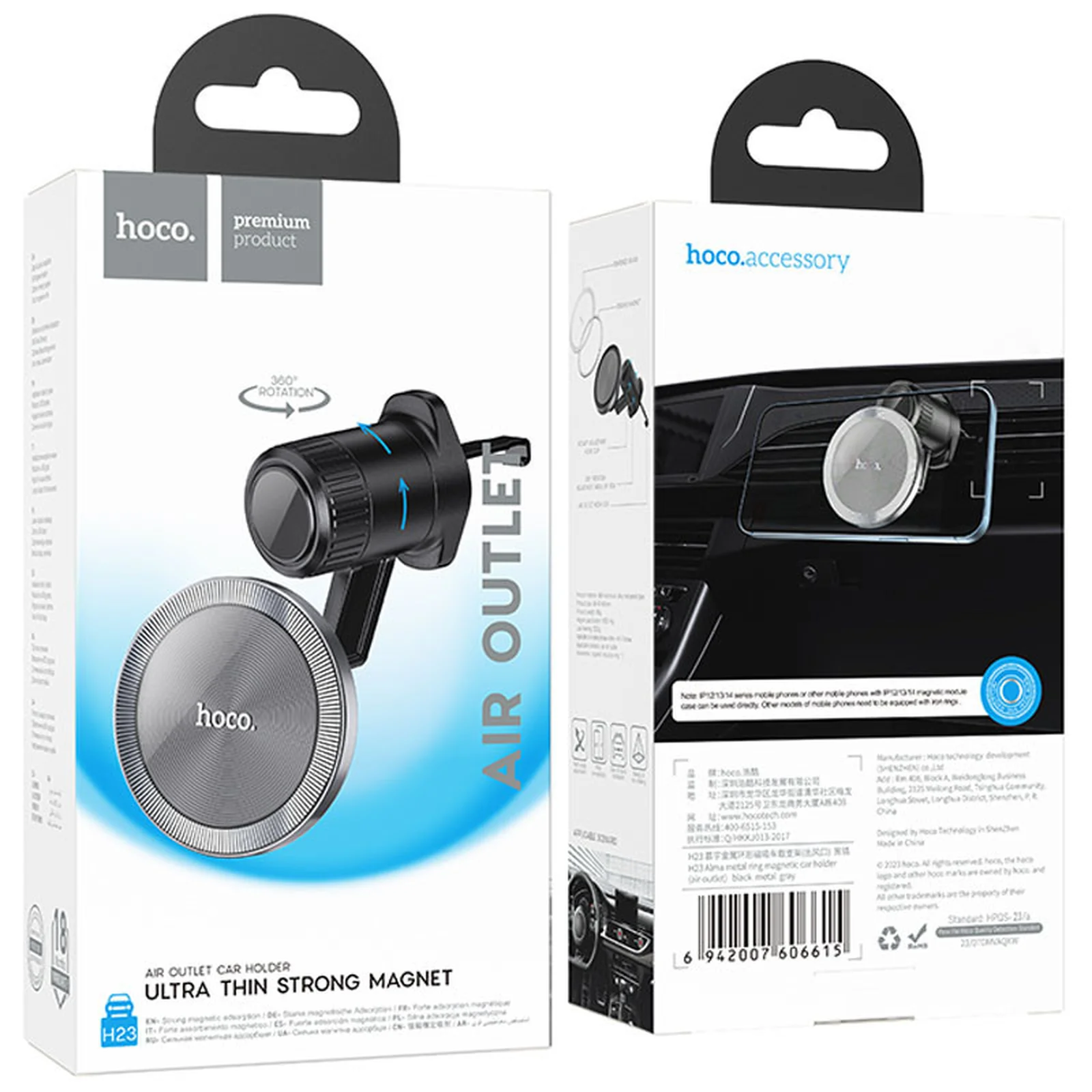 Автодержатель Hoco H23 Alma metal ring magnetic (air outlet) Black / Metal gray