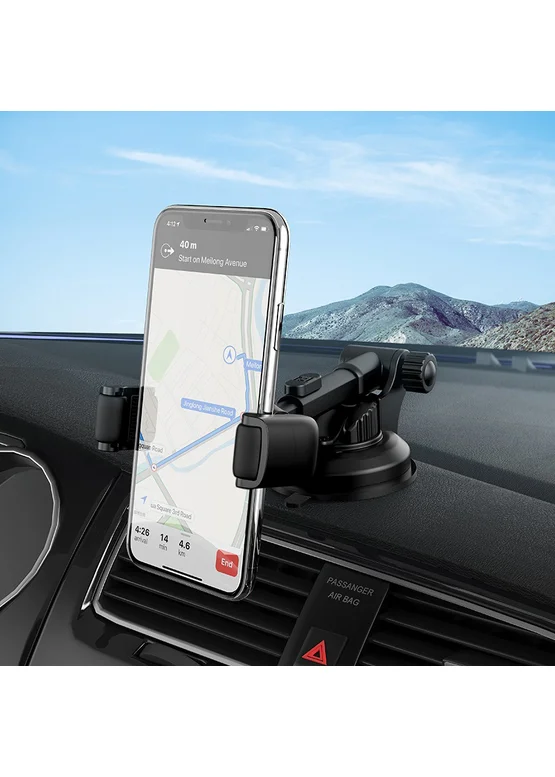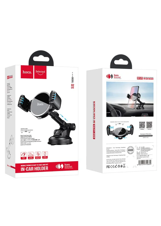 Автодержатель Hoco S12 Lite (Черно - стальной)