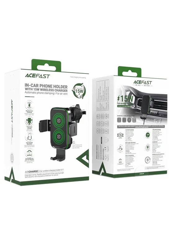 Автодержатель с БЗУ Acefast D17 Black