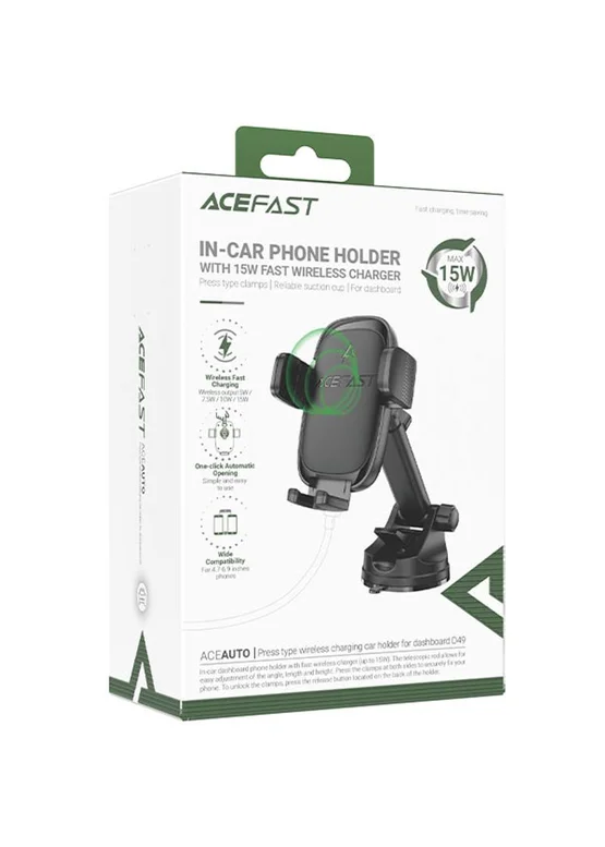 Автодержатель с БЗУ Acefast D49 Wireless Charging 15W Black
