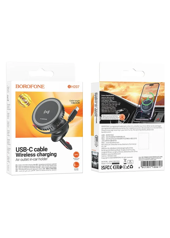 Автодержатель с БЗУ Borofone BH207 Mona retractable (air outlet) Black