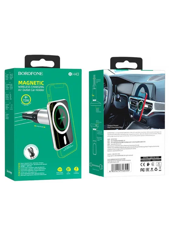 Автодержатель с БЗУ Borofone BH43 Magnetic 15W Black steel