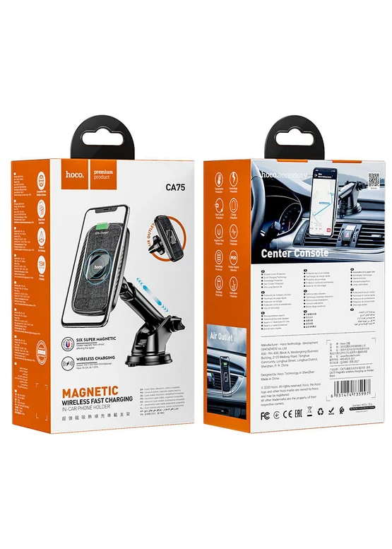Автодержатель с БЗУ Hoco CA75 магнитный (Черный)