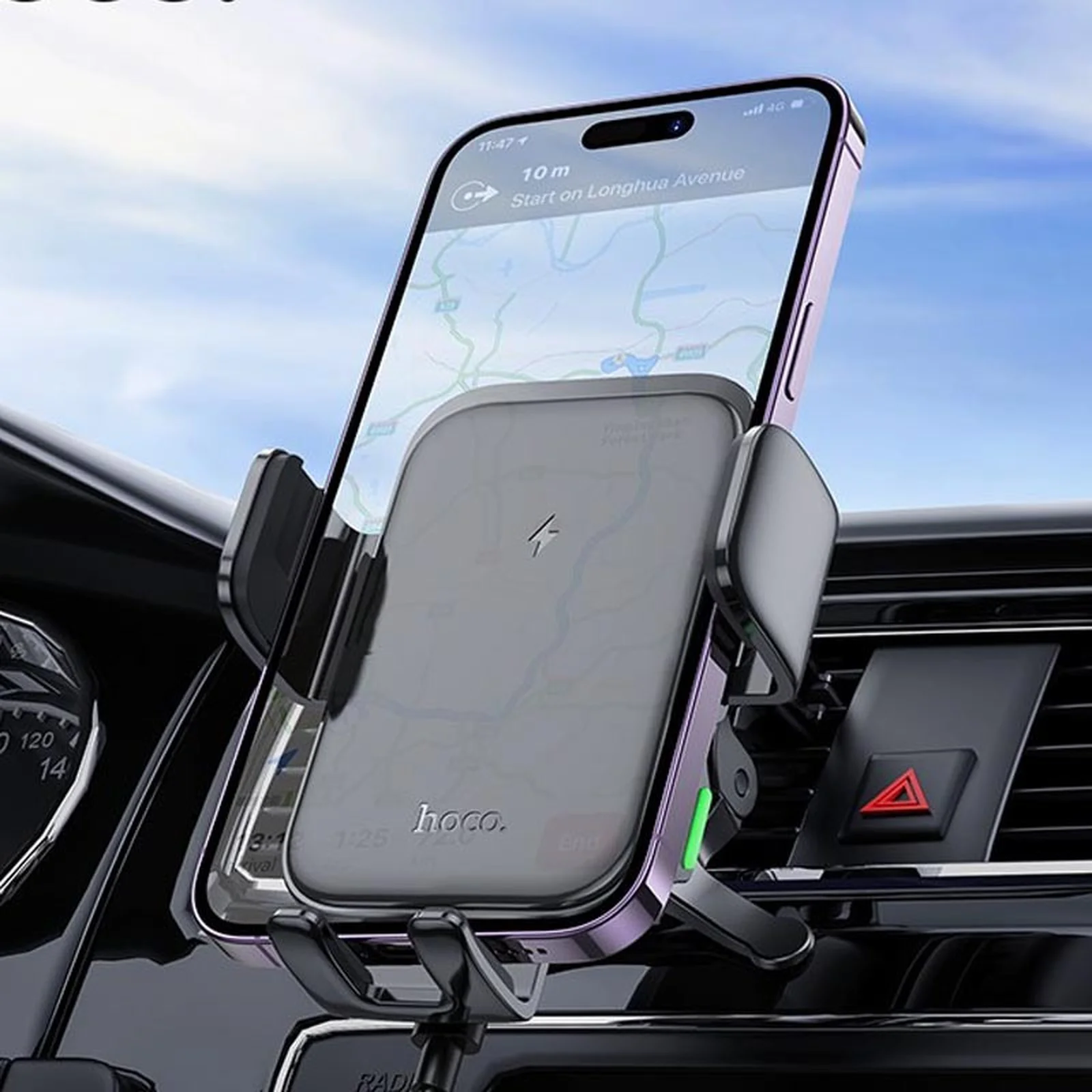 Автодержатель с БЗУ Hoco HW10 Jenny three-axis linkage (air outlet) Black