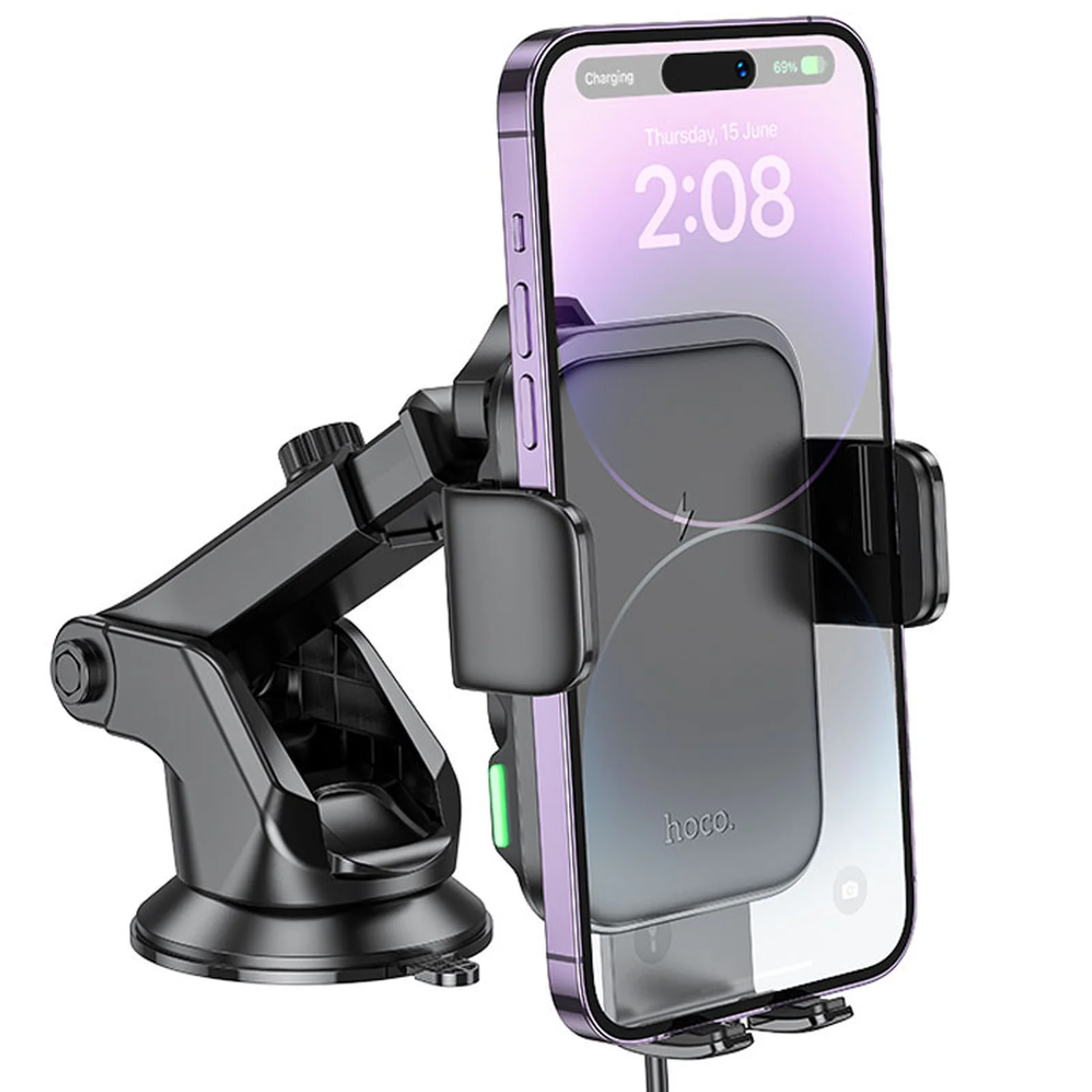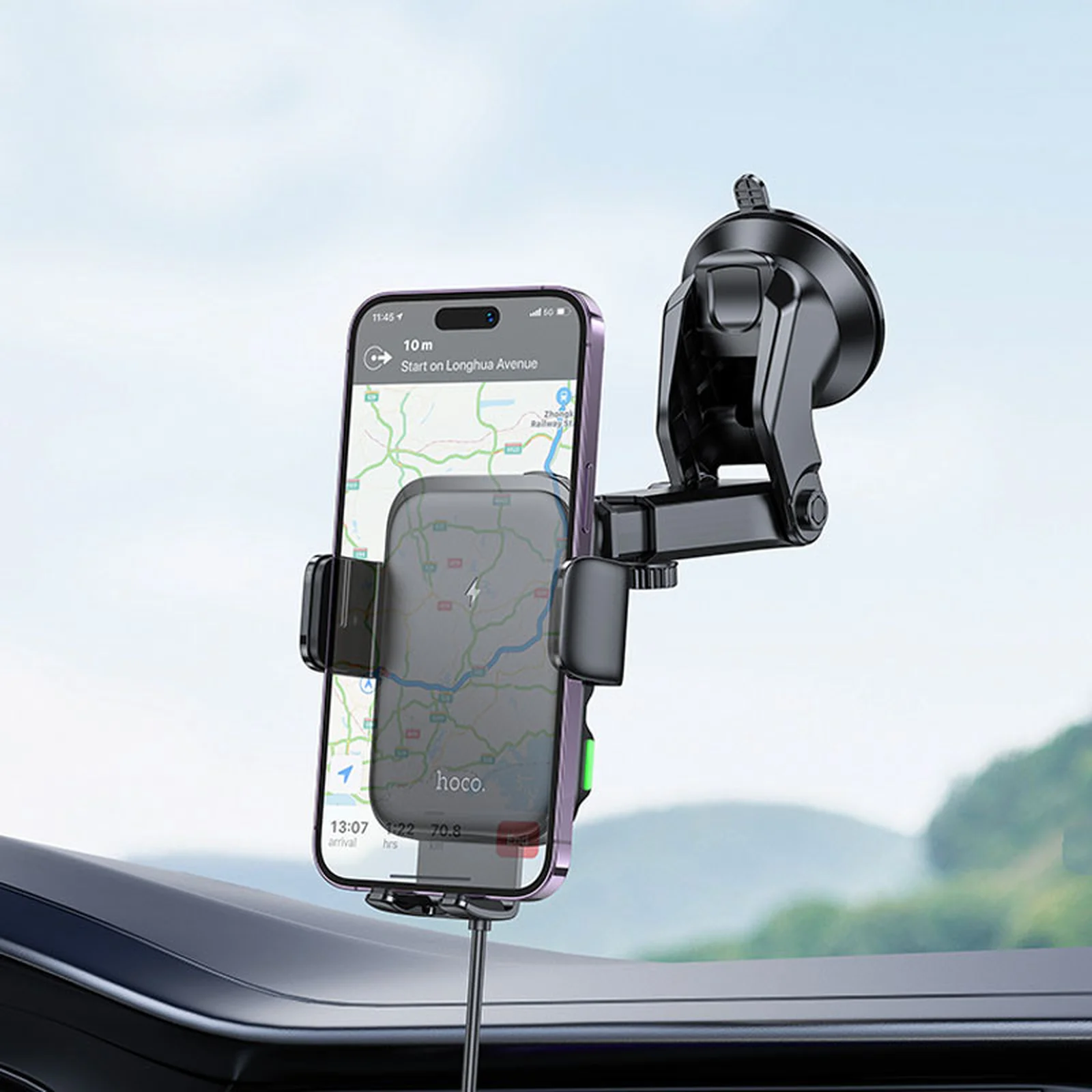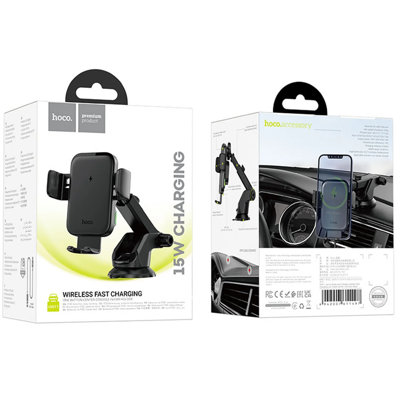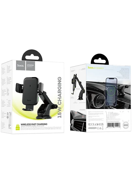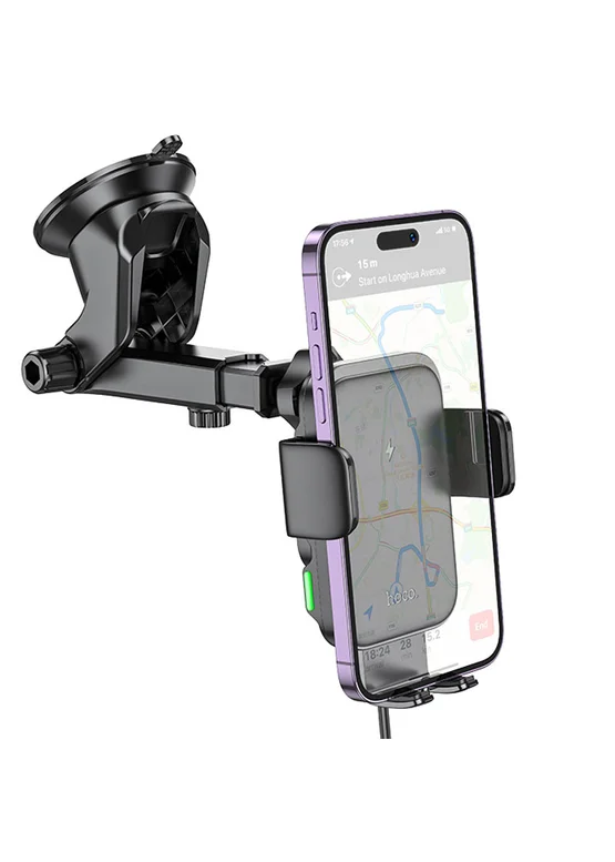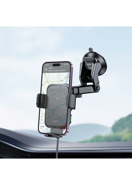 Автодержатель с БЗУ Hoco HW11 Jenny three-axis linkage (center console) Black