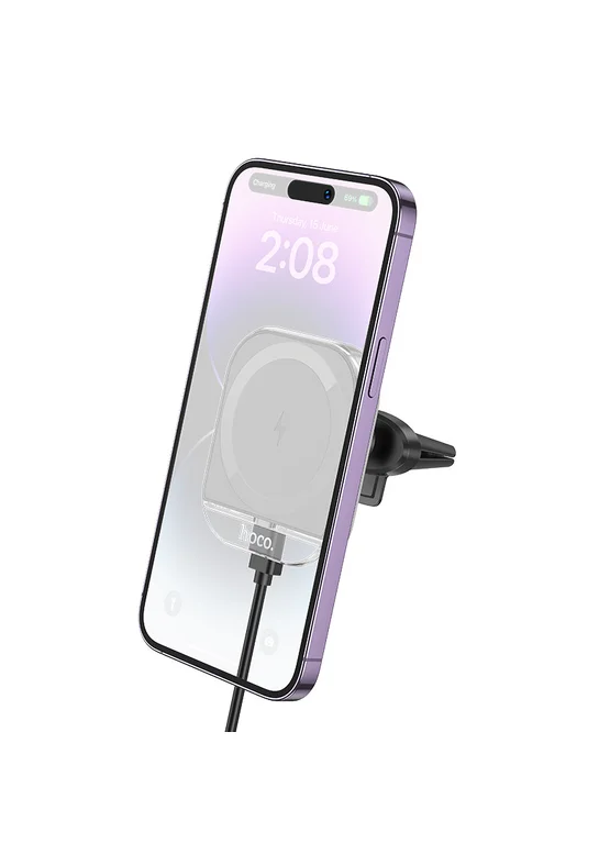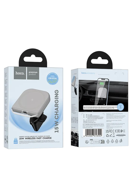 Автодержатель с БЗУ Hoco HW17 Crystal (air outlet) Gray