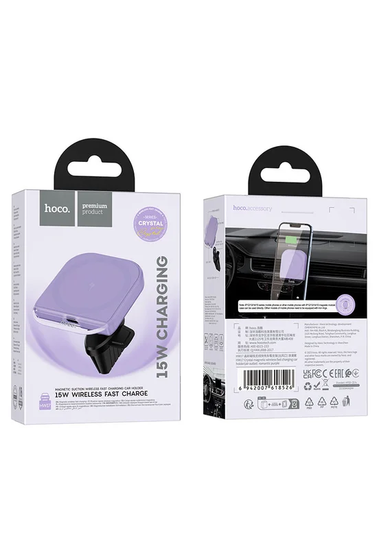 Автодержатель с БЗУ Hoco HW17 Crystal (air outlet) Romantic purple