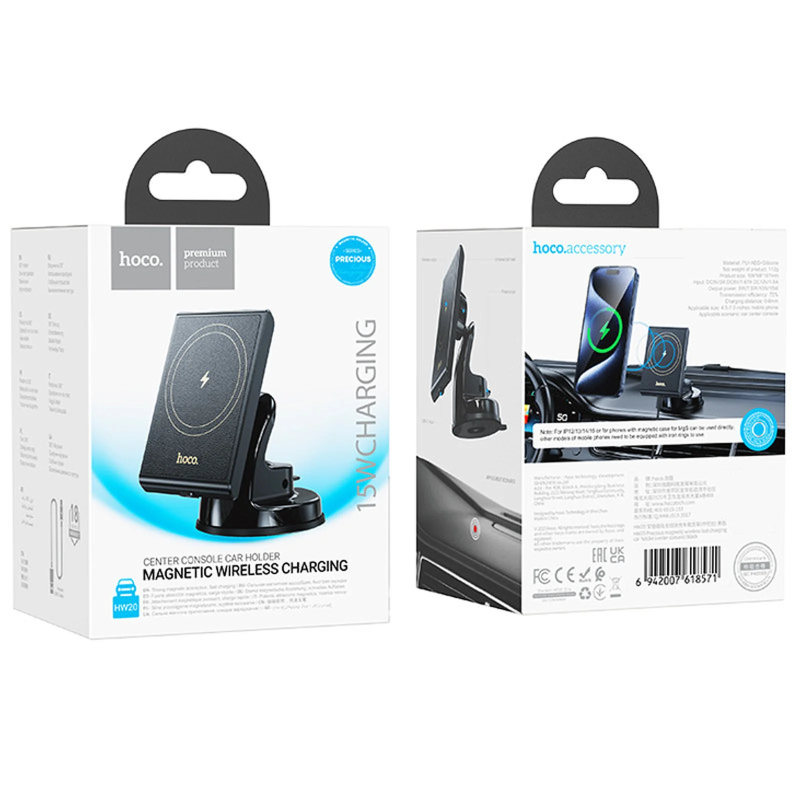 Автодержатель с БЗУ Hoco HW20 Precious (center console) Black