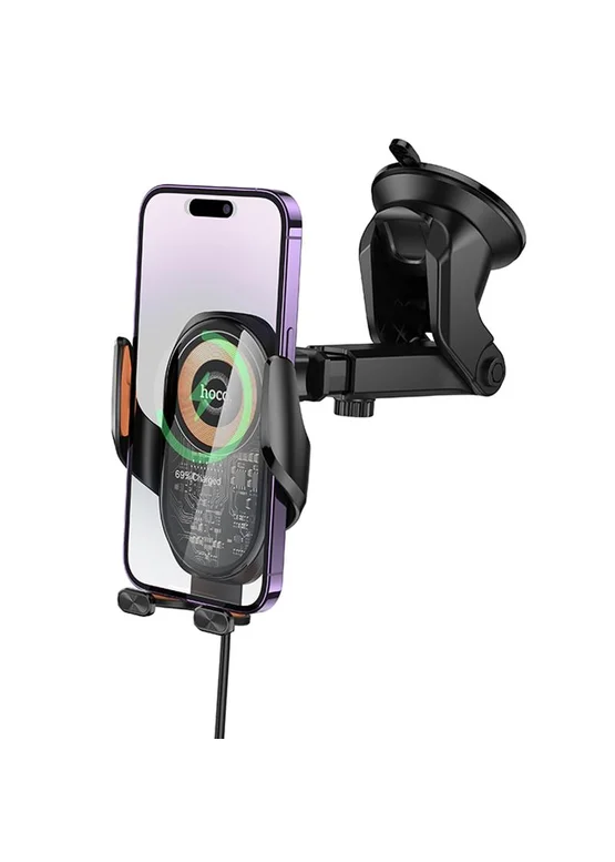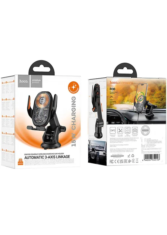 Автодержатель с БЗУ Hoco HW34 Blue whale 3-axis linkage wireless 15W (center console)
