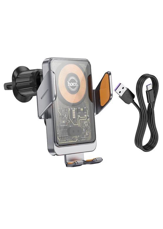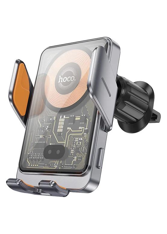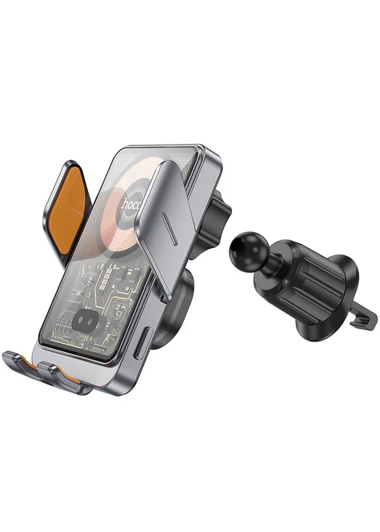 Автодержатель с БЗУ Hoco HW7 Transparent Discovery Edition (air outlet) Metal gray