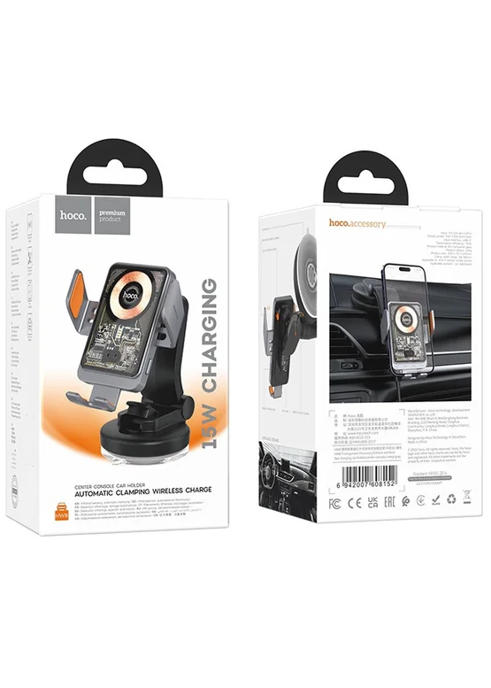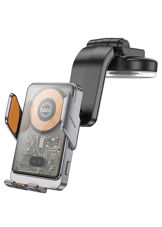 Автодержатель с БЗУ Hoco HW8 Transparent Discovery Edition (center console) Metal gray