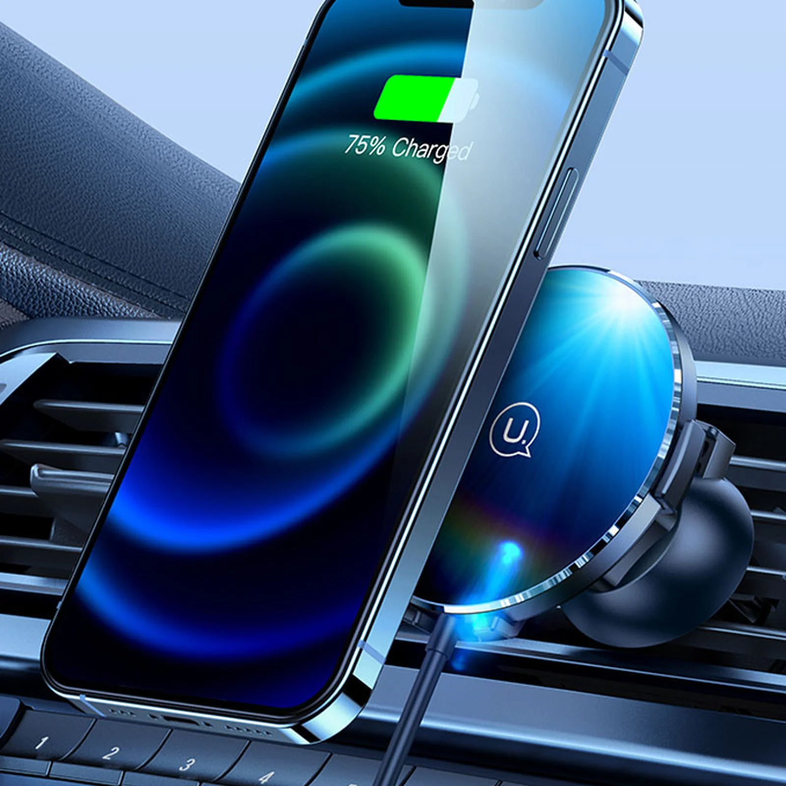 Автодержатель с БЗУ USAMS US-CD164 Ultra-Slim 15W Черный