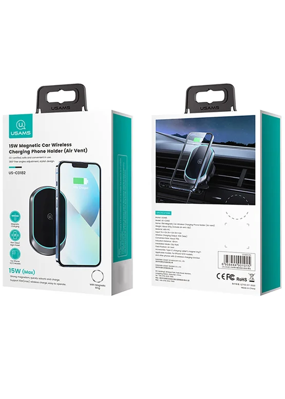 Автодержатель с БЗУ Usams US-CD182 15W Air Vent Black