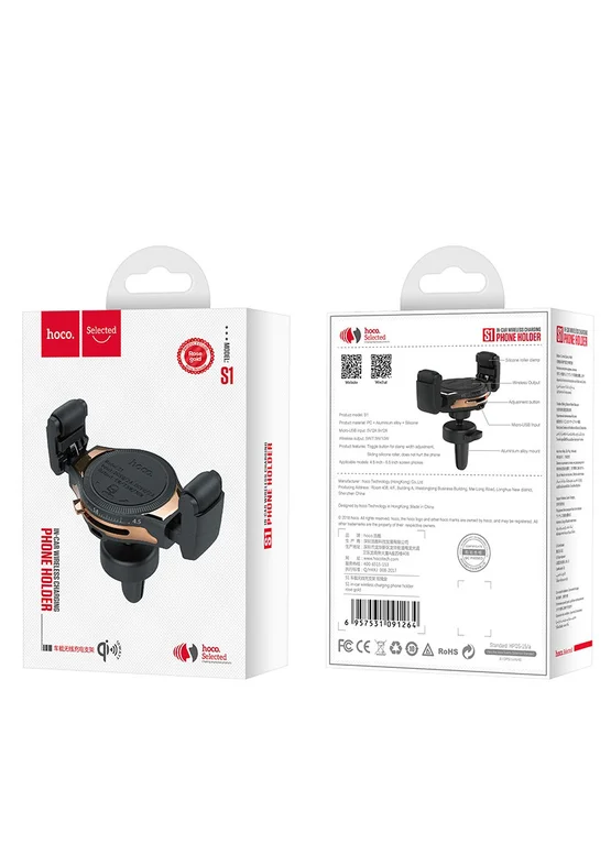 Автодержатель с БЗУ Wireless Charger Hoco S1 (rose_gold)