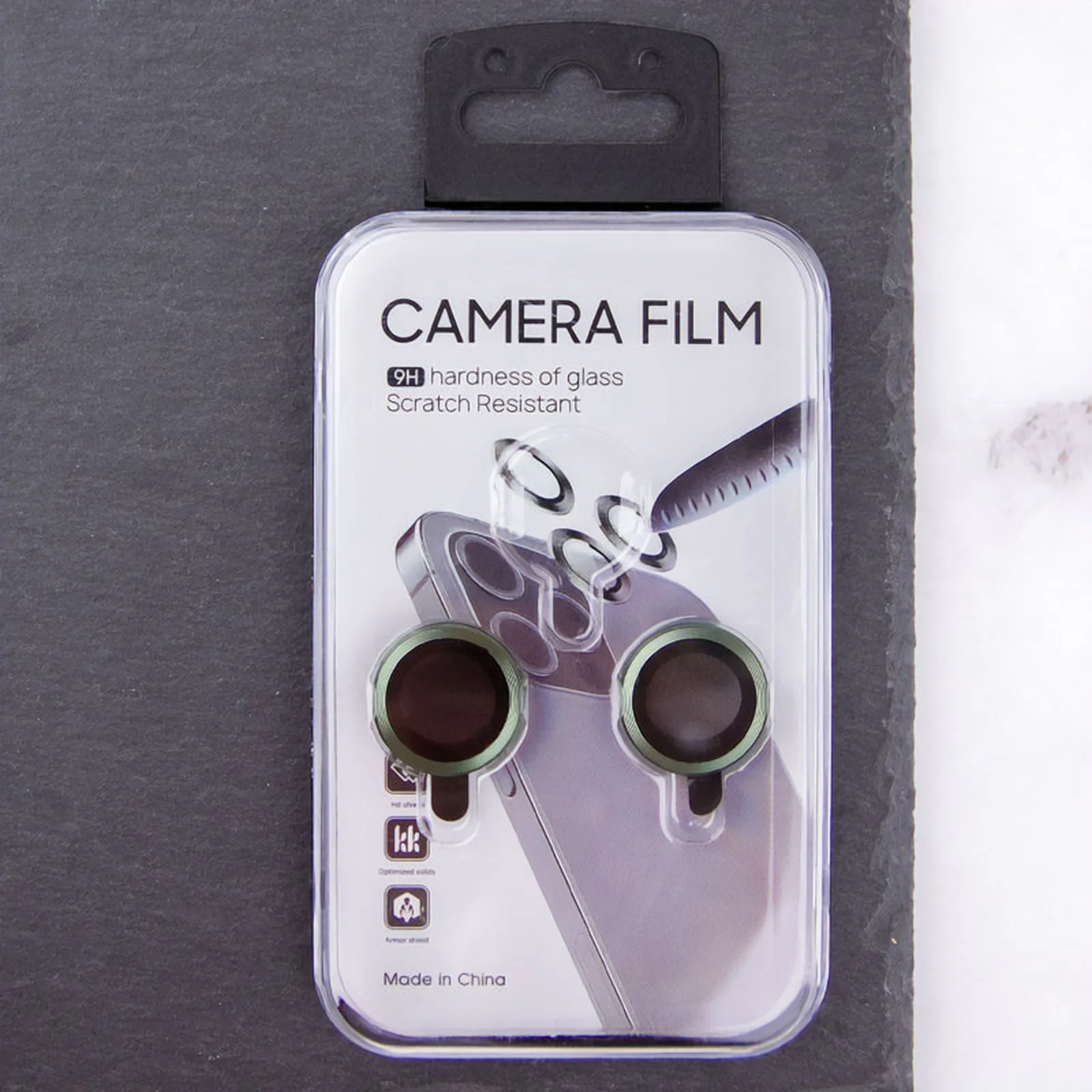 Защитное стекло Metal Classic на камеру (в упак.) для Apple iPhone 15 (6.1") / 15 Plus (6.7") Зеленый / Dark green