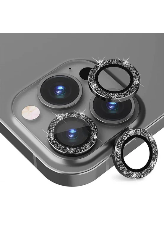 Защитное стекло Metal Sparkles на камеру (в упак.) для Apple iPhone 15 Pro (6.1") /15 Pro Max (6.7") Черный / Midnight