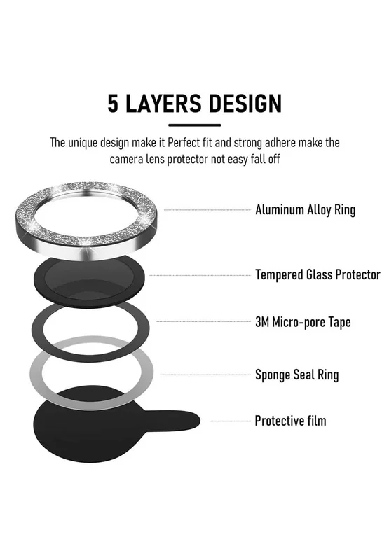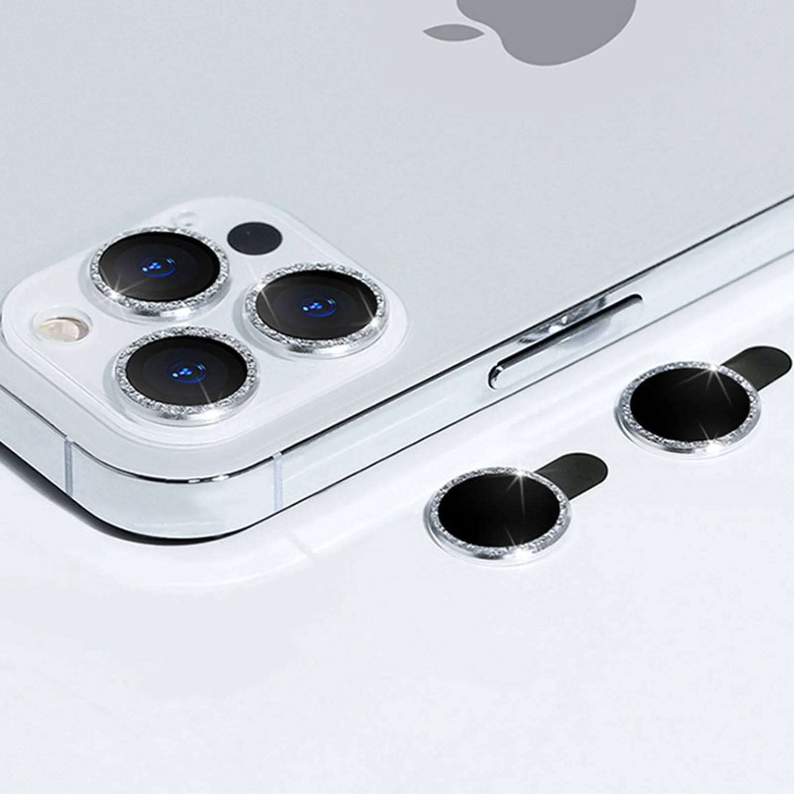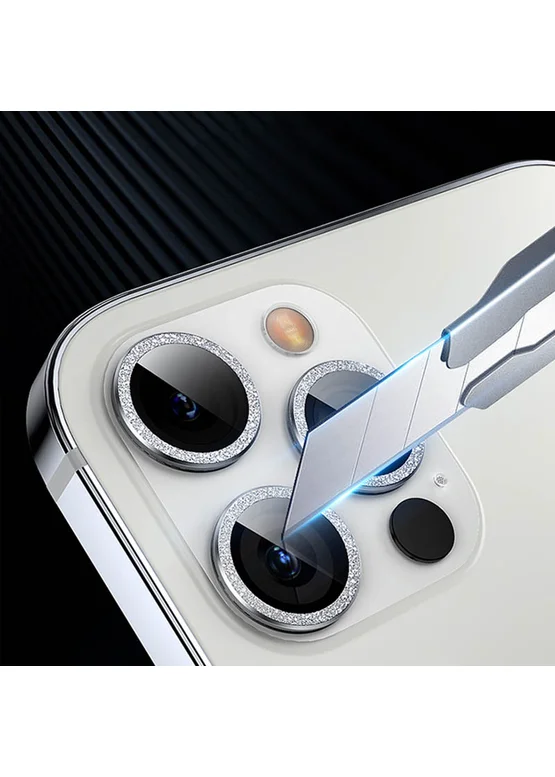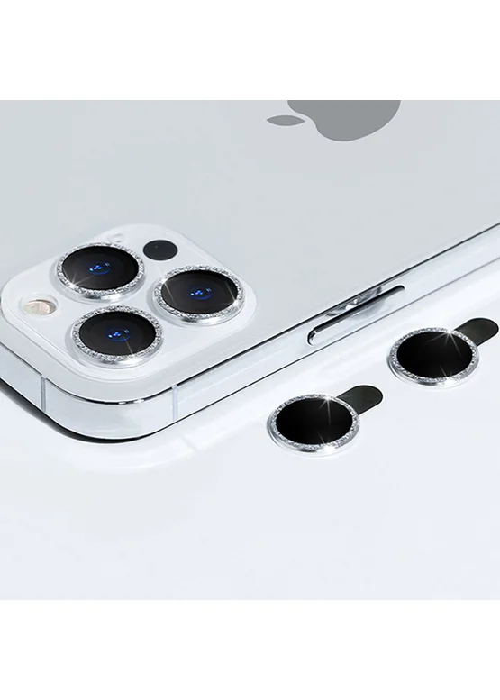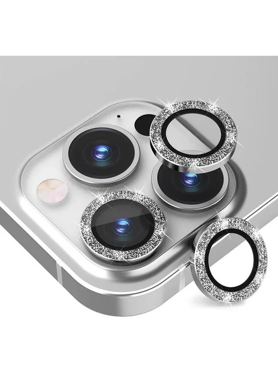 Защитное стекло Metal Sparkles на камеру (в упак.) для Apple iPhone 15 Pro (6.1") /15 Pro Max (6.7") Серебряный / Silver