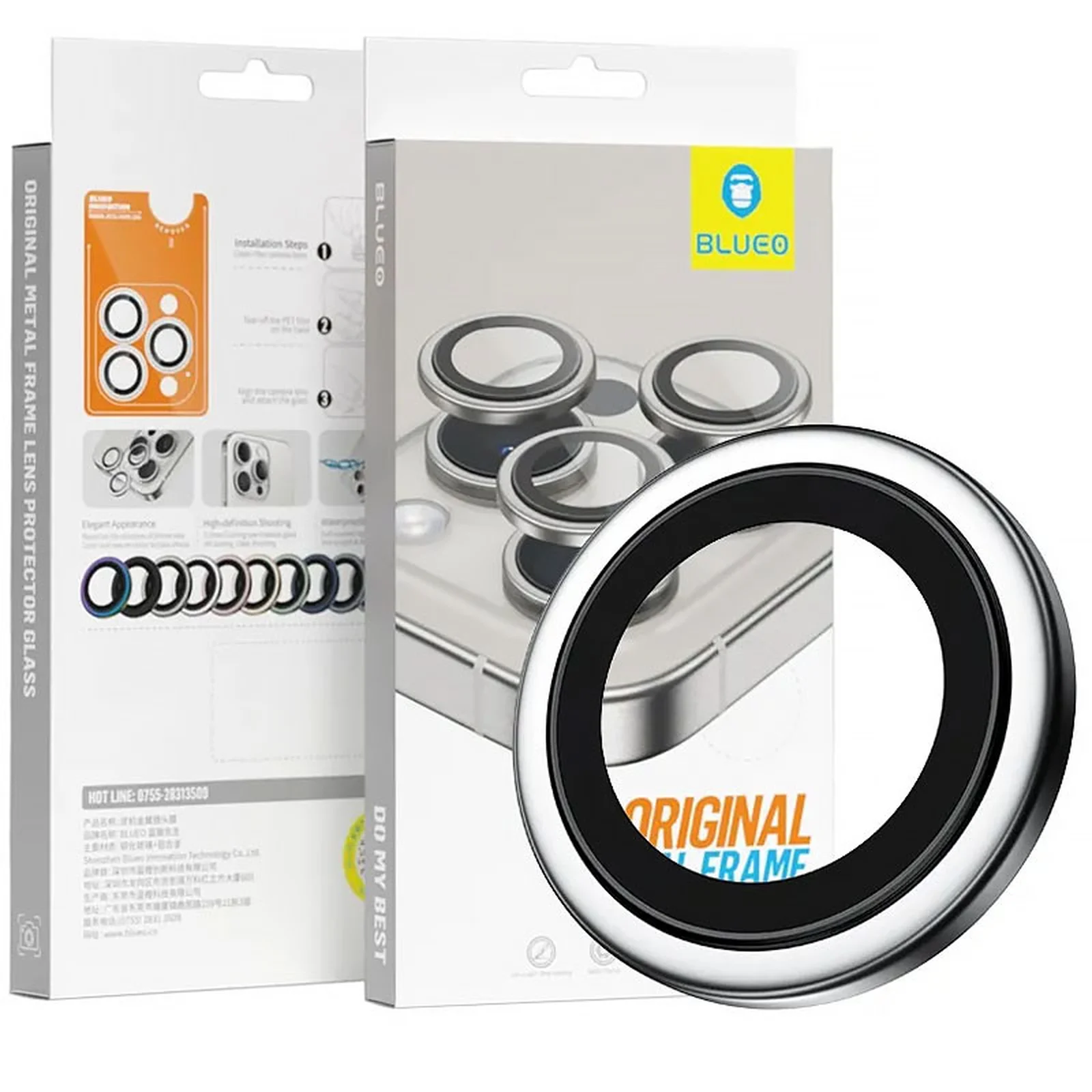 Защитное стекло BlueO Metal на камеру для Apple iPhone 16 (6.1") / 16 Plus (6.7") Серебряный / Silver