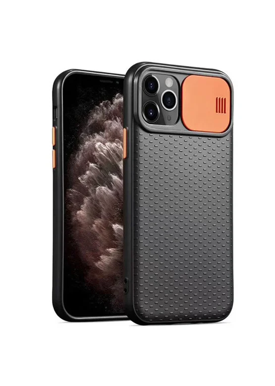 Чехол Camshield Black TPU со шторкой защищающей камеру для Apple iPhone 11 Pro Max (6.5") (Черный / Оранжевый)