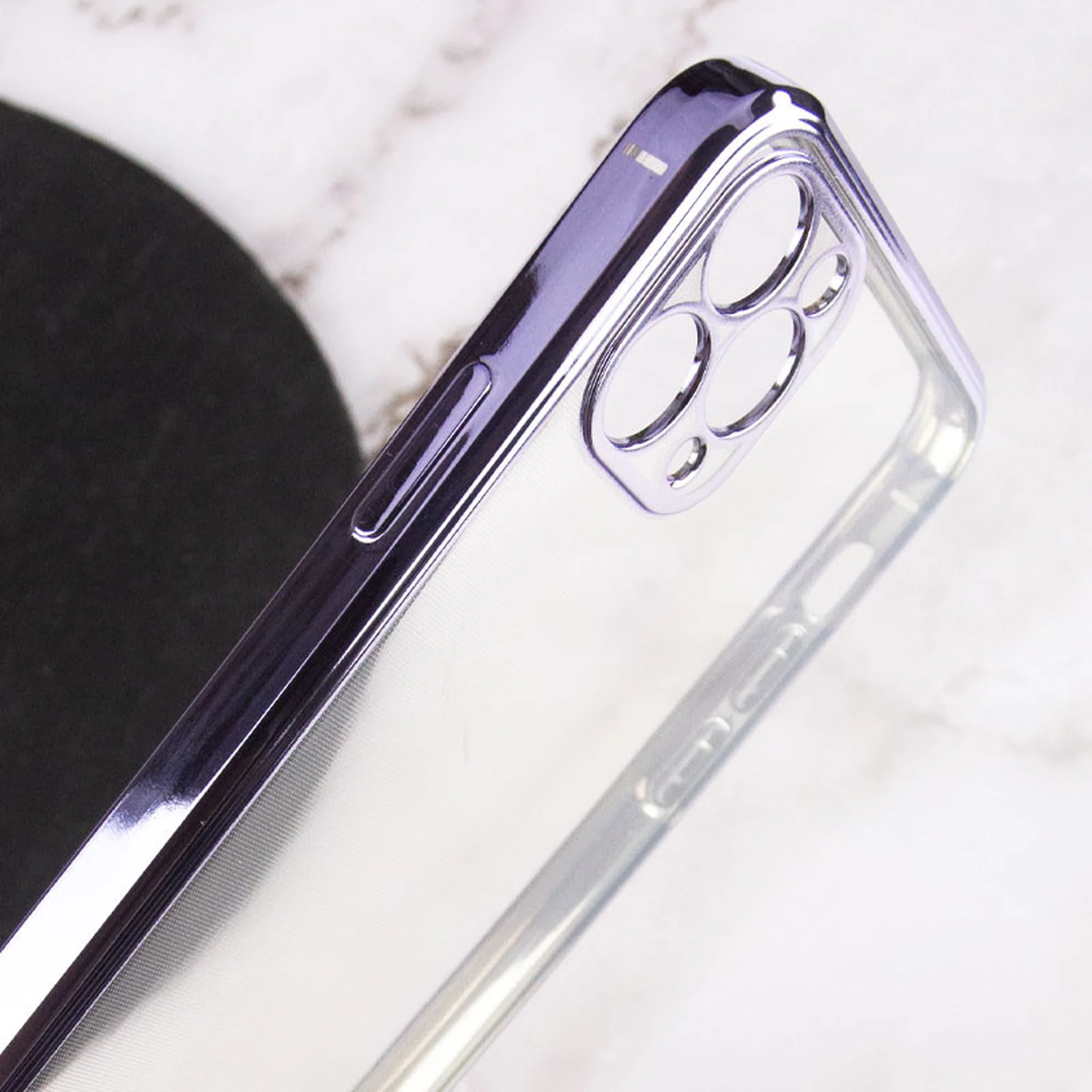 Прозрачный силиконовый чехол с глянцевой окантовкой Full Camera для Apple iPhone 11 Pro Max (6.5") Сиреневый