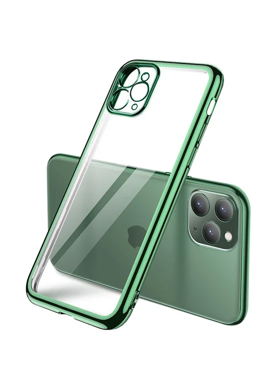 Прозрачный силиконовый чехол с глянцевой окантовкой Full Camera для Apple iPhone 11 Pro Max (6.5") (Темно-зеленый)
