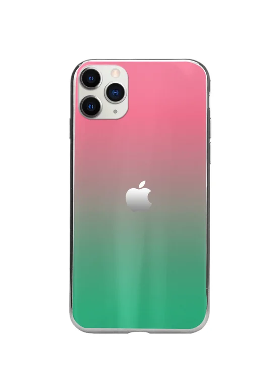 TPU+Glass чехол Gradient Aurora с лого для Apple iPhone 11 Pro Max (6.5") (Розовый / Бирюзовый)