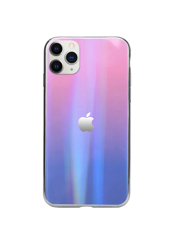 TPU+Glass чехол Gradient Aurora с лого для Apple iPhone 11 Pro Max (6.5") (Розовый / Сиреневый)