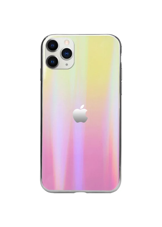 TPU+Glass чехол Gradient Aurora с лого для Apple iPhone 11 Pro Max (6.5") (Золотой / Розовый)