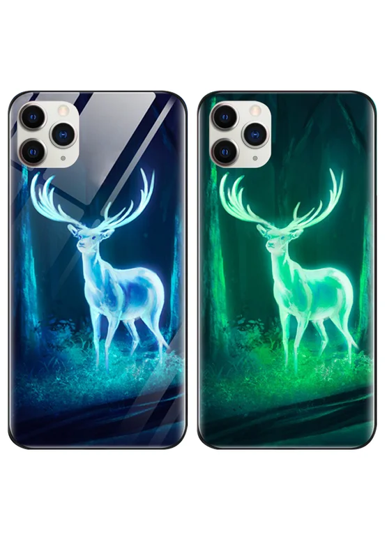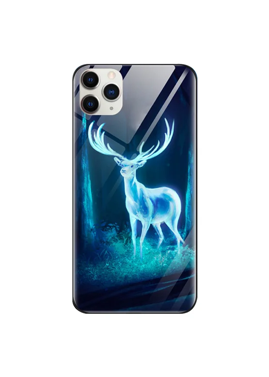 TPU+Glass чехол светящийся в темноте для Apple iPhone 11 Pro Max (6.5") Олень / Бирюзовый