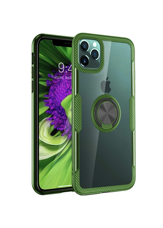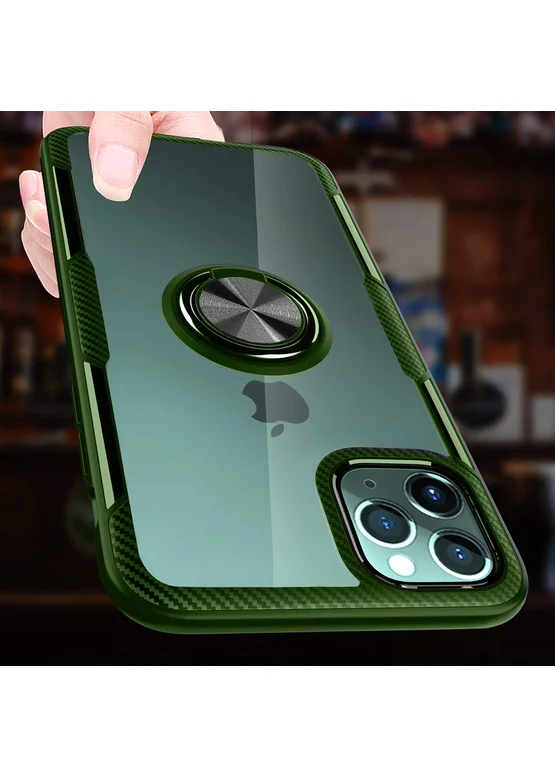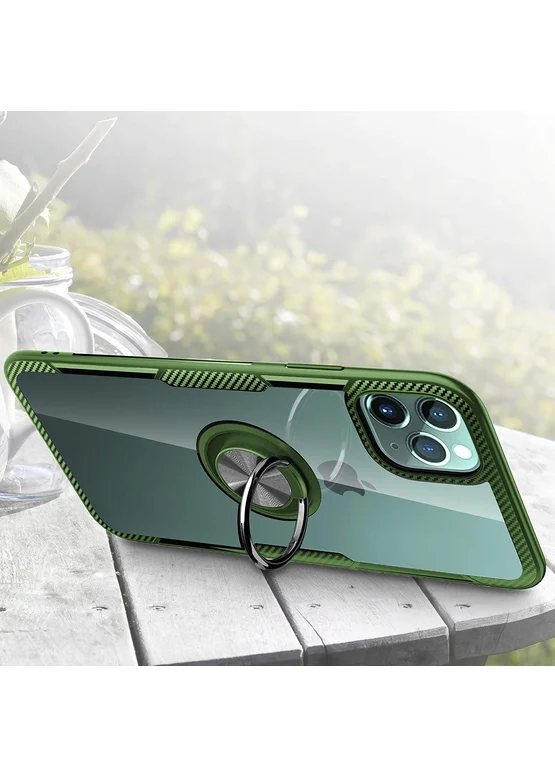 TPU+PC чехол Deen CrystalRing под магнитный держатель для Apple iPhone 11 Pro Max (6.5") Бесцветный / Оливковый