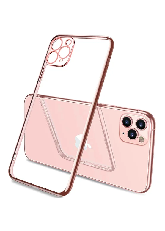 Прозрачный силиконовый чехол с глянцевой окантовкой Full Camera для Apple iPhone 11 Pro (5.8") (Rose Gold)