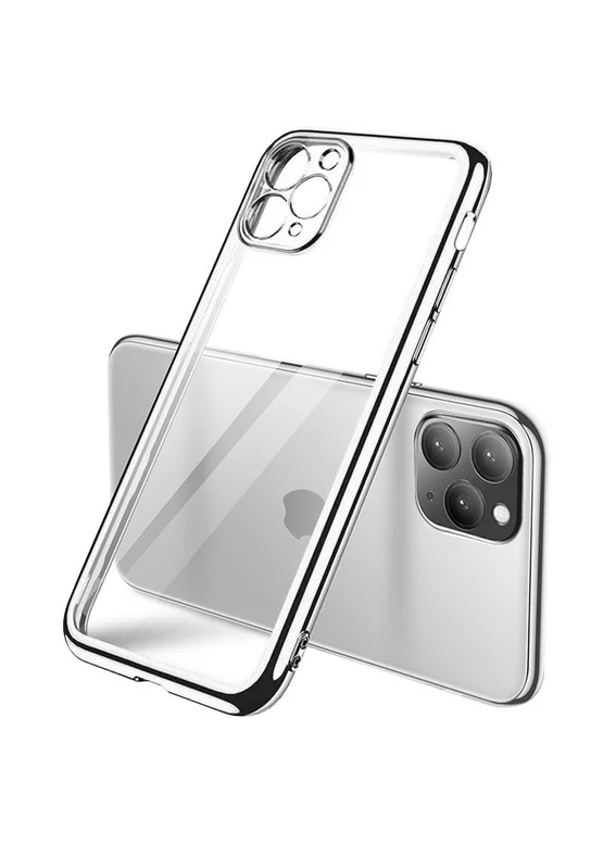 Прозрачный силиконовый чехол с глянцевой окантовкой Full Camera для Apple iPhone 11 Pro (5.8") Серебряный