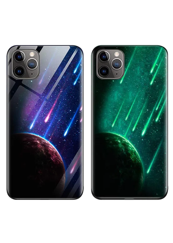 TPU+Glass чехол светящийся в темноте для Apple iPhone 11 Pro (5.8") Метеорит / Синий