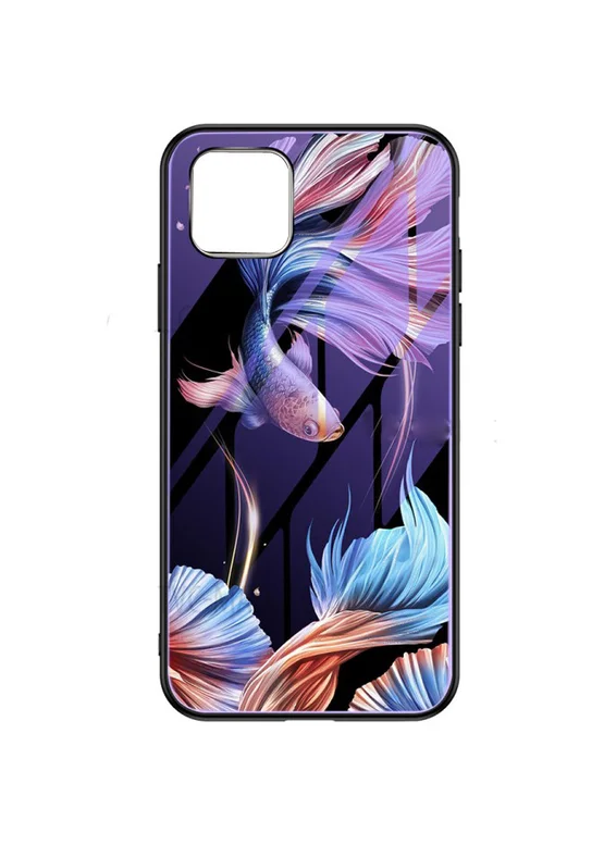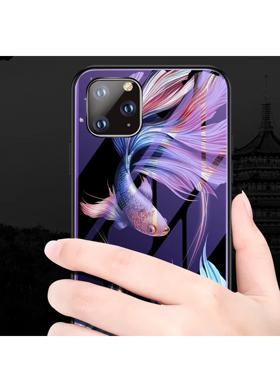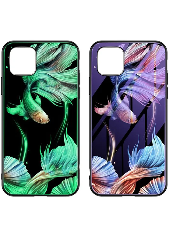 TPU+Glass чехол светящийся в темноте для Apple iPhone 11 Pro (5.8") (Рыбка / Фиолетовый)